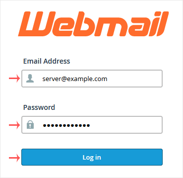 1. Open http://example.com/webmail, replace example.com with your domain name, enter your full email address and password in user login details, and click on Login.